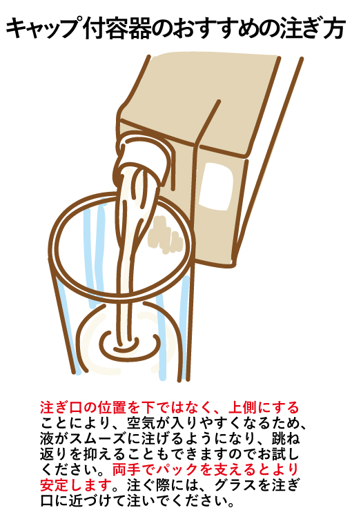 新しいキャップでは、下図のように注いでいただくと跳ね返りが抑えられます。